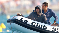 法國圣特羅佩,“小李子”萊昂納多·迪卡普里奧(Leonardo DiCaprio)與朋友海上度假,穿連帽衫戴墨鏡難掩星范。