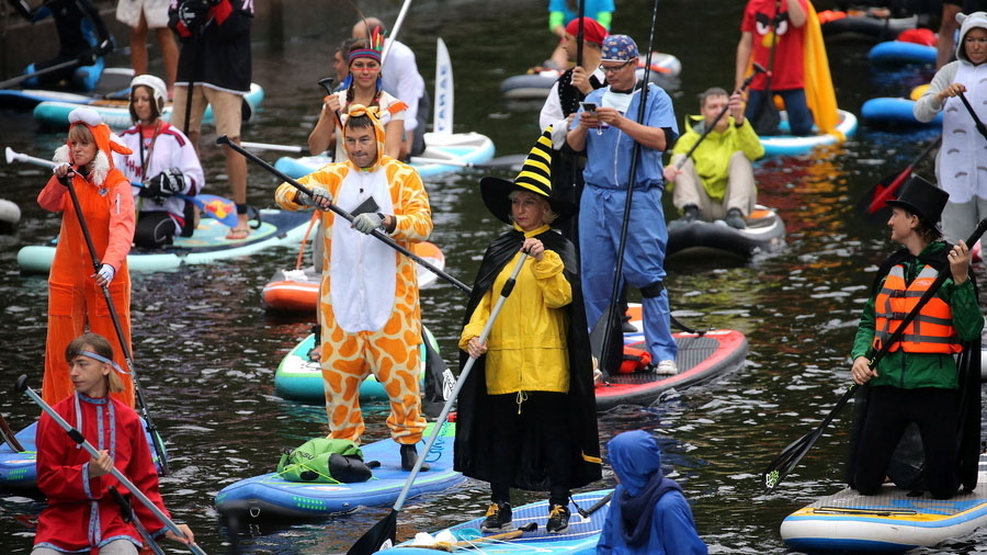 圣彼得堡上演槳板沖浪節 選手奇裝異服亮相歡樂搞笑