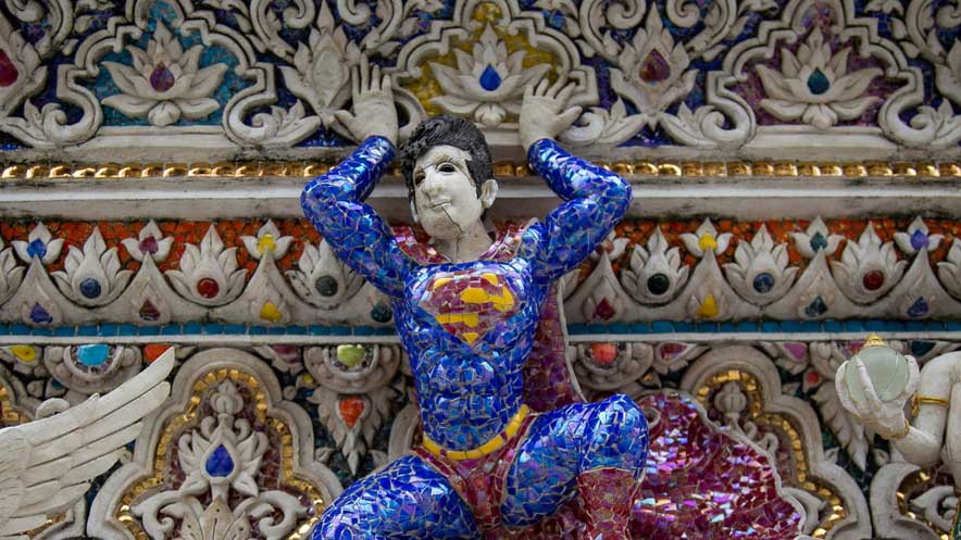 泰國曼谷一廟宇驚現超人、皮卡丘等動漫雕像 跨界裝飾創意無窮!