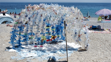 意大利海灘現防曬裝置 廢棄塑料瓶打造環保實用
