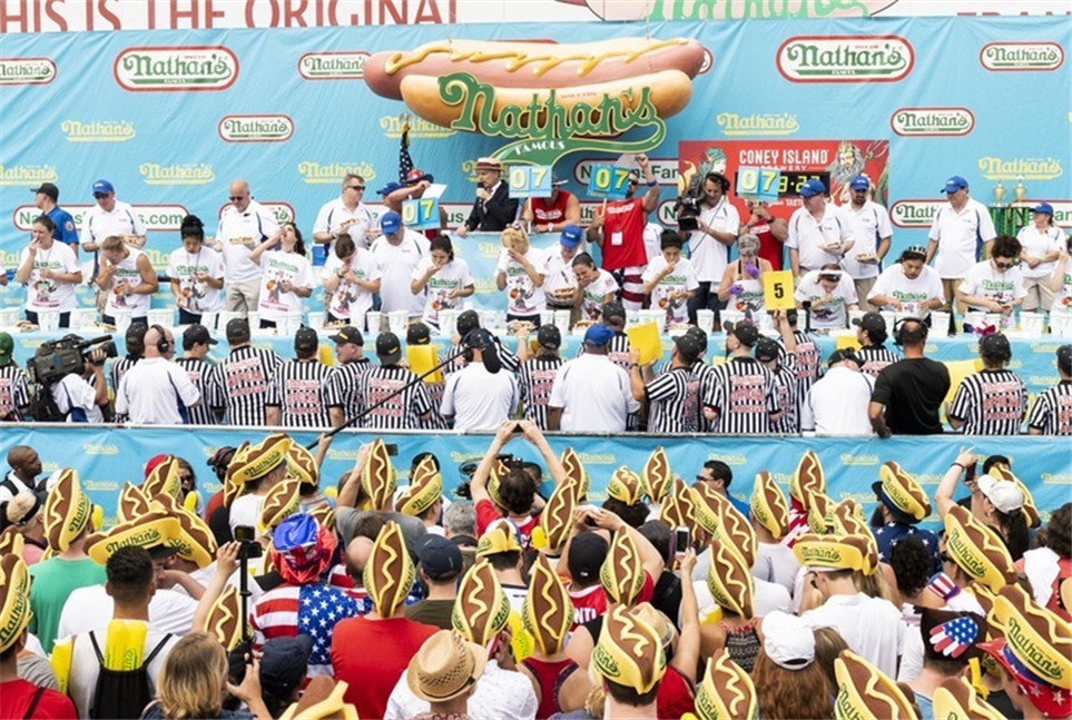 紐約布魯克林國際吃熱狗大賽落幕 選手破紀錄食量驚人