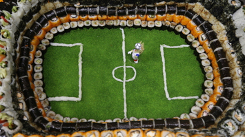 俄羅斯一餐廳推出“吃貨”球場 6000個壽司打造助陣戰斗民族