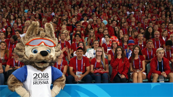 世界杯現場連起一片“紅海” 俄羅斯和克羅地亞舉行感謝志愿者儀式
