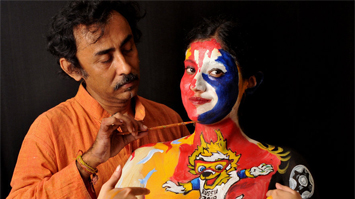 體育和藝術的完美結合!印度球迷將身體當畫布繪上世界杯吉祥物