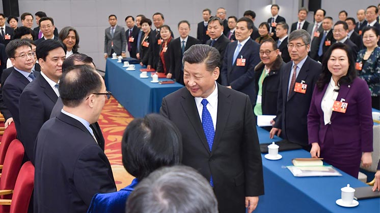3月4日下午,中共中央總書記、國家主席、中央軍委主席習近平看望參加全國政協十三屆一次會議的民盟、致公黨、無黨派人士、僑聯界委員并參加聯組會,聽取意見和建議。(據新華社“新華視點”微博報道)