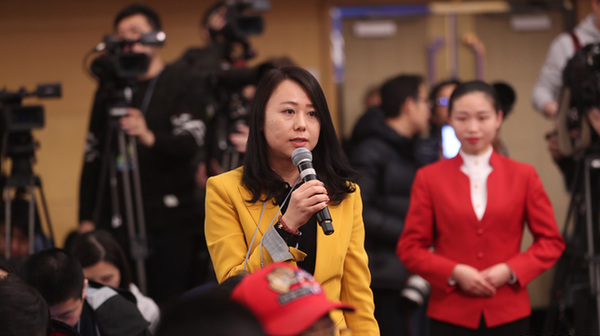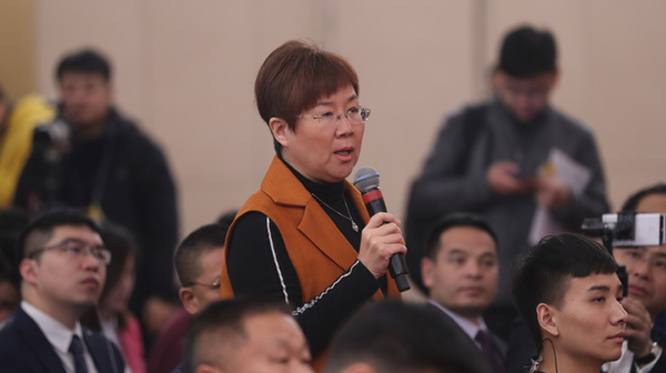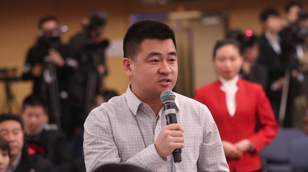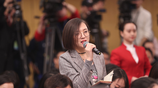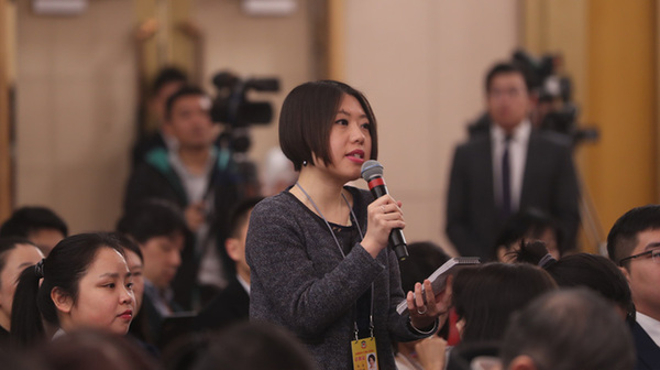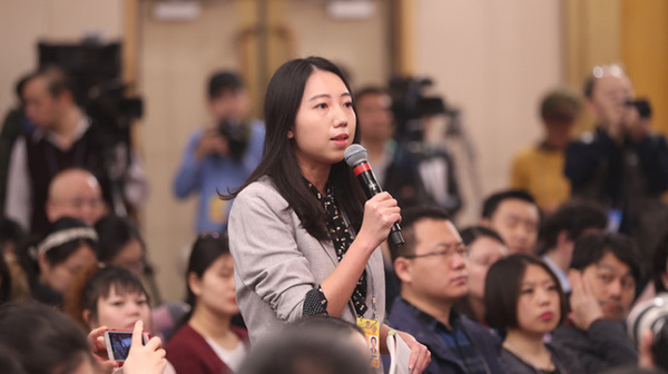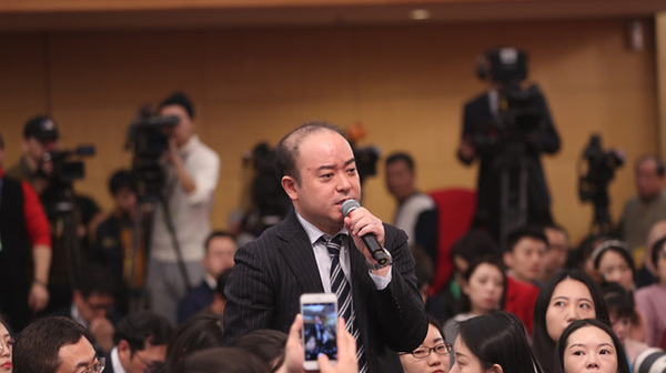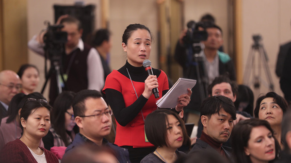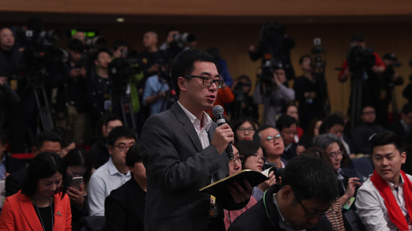 十三屆全國(guó)人大一次會(huì)議新聞中心于3月7日上午在梅地亞中心多功能廳舉行記者會(huì),邀請(qǐng)財(cái)政部部長(zhǎng)肖捷,副部長(zhǎng)史耀斌、胡靜林就“財(cái)稅改革和財(cái)政工作”相關(guān)問題回答中外記者提問。圖為中國(guó)日?qǐng)?bào)記者提問。