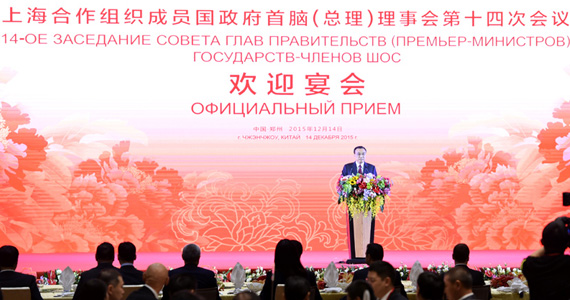 在北京會見哈薩克斯坦總理后,李克強總理14日下午立即飛赴河南鄭州,出席上海合作組織成員國政府首腦(總理)理事會第十四次會議。當晚19時許,李克強與上合組織各國領導人在鄭州相會,共同參觀河南省與上合組織成員國合作成果展,隨后舉行宴會歡迎外賓。